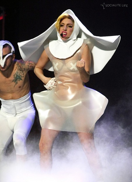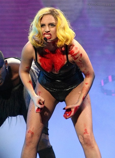 I’m so tired of seeing her CONSTANTLY seeking attention and dressing in these ridiculous outfits at her concerts. In interviews she talks about how she wants to focus on her music, fine go do that and stop this frivolous idiocy! Here is some proof of her artistic genius. Maddonna did all this before and it wasn’t impressive or substantive when she did it. Behold the profound art of GaGa: