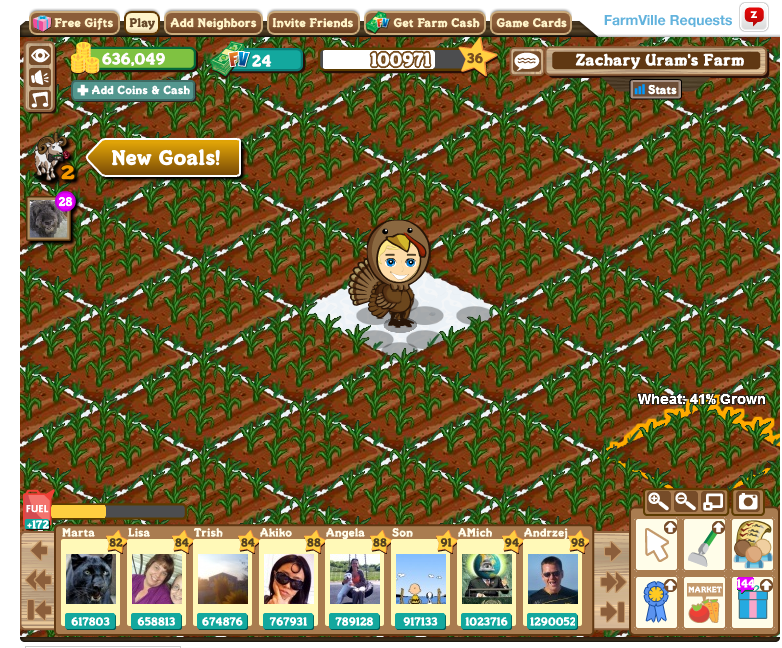 I purchased a cool turkey costume in Farmville for 100,000 coins.