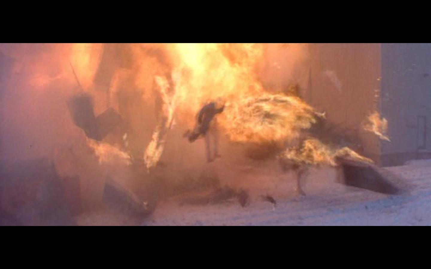 Here are a number of frames from an explosion sequence in the Steven Seagal movie “On Deadly Ground” (1994). Steven’s character has on only a fire retardant suit, yet he miraculously survives! LOL