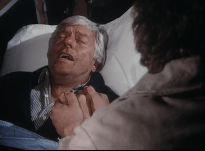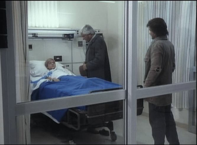 The next morning Wally shows them the money he’s sending in for life insurance. He says it’s to pay for Sylvia’s care in case anything happens to them. Wally says they’re going to check on Stevie. As they arrive he finds Stevie being taken away by ambulance. The cop tells them he’s being taken to St. James Hospital. Jonathan, Mark, and Wally rush over there. They arrive at the Intensive Care Unit. Stevie’s parents are sitting outside. Wally says he heard about Stevie and asks how he’s doing. His father says Stevie is in a coma and they don’t expect him to come out of it. Wally asks if he can see Stevie and his mother agrees. Jonathan and Wally enter Stevie’s room. Wally says “First Margaret. Now my little Stevie. God, please, let this boy…You’ve worked miracles before. Work one now. Let him live. His life is just beginning. Please, God! God take me instead. My life’s nearly over, and full. Please, let him live.” Wally asks to be left alone and walks away. Mark says “It’s tonight isn’t it?” Jonathan says “Yeah.” Mark says “That’s the way it’s supposed to be Jonathan, but isn’t there a chance?” Jonathan says “No Mark. Wally’s one of the chosen ones. His prayer will be answered tonight.”