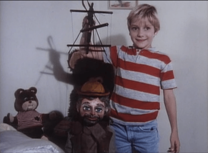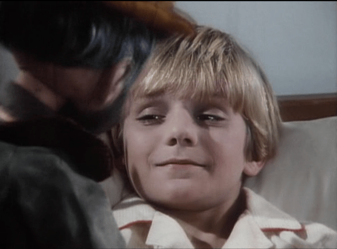 Sometime later, we see Jonathan and Mark arrive at Stevie’s house. Mark asks how Stevie is. His mother says “Healthy and hungry! It’s a miracle! The doctors, everybody, it’s all they can say. I mean it’s not just remission, it’s gone! I mean just it has to be a miracle, there’s just no other explanation!” Jonathan says “No there isn’t.” Mark explains that they brought Wally’s little dog as a gift for Stevie. Wally wanted the boy to have it earlier, but the boy objected since he didn’t believe he had long to live. Stevie comes out of his bedroom and says “John Silver! Wally said you had him out here. Wally’s going on a long trip. He stopped by to say so long and he said you were bringing the pup over!” They enter his bedroom and see no one there. Stevie says “Said he was taking a real special trip.” Stevie shows the puppet and says that Wally gave it to him and that his name is Wally too. Stevie’s mother looks astonished.
