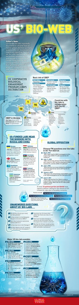 “An analysis of the information received suggests that Ukrainian specialists have not been made aware of the potential risks involved in the transfer of bio-materials, and that they are essentially being used and kept in the dark, and have no real idea about the true goals of the ongoing research,” Kirillov said at a briefing in Moscow on March 17th.
