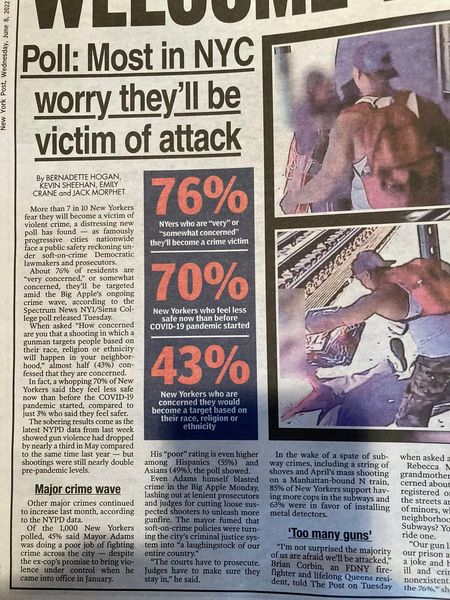 This meme, which is from a recent article in the New York Post, shows that the overwhelming majority of New York City residents are worried about being the victim of crime. In the vast majority of cases, these crimes are committed by black people.