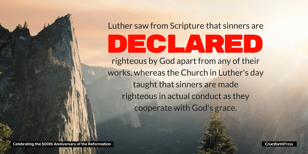 The Reformers steadfastly rejected this. The upheld the idea that we are justified apart from works, even as Paul teaches us. Luther explained this concept of “justification” in the Smalcald Articles: