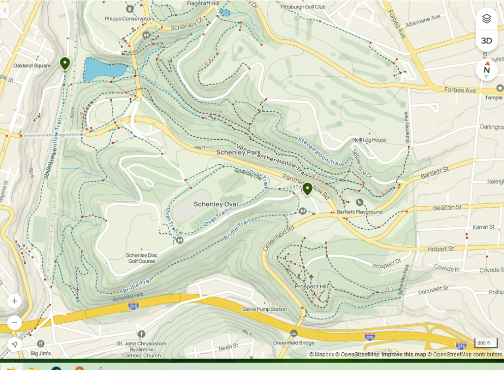 I’m out of the park in South Oakland now